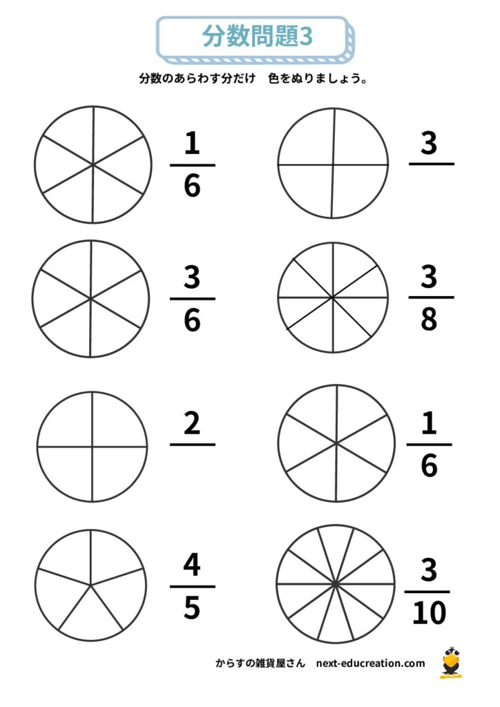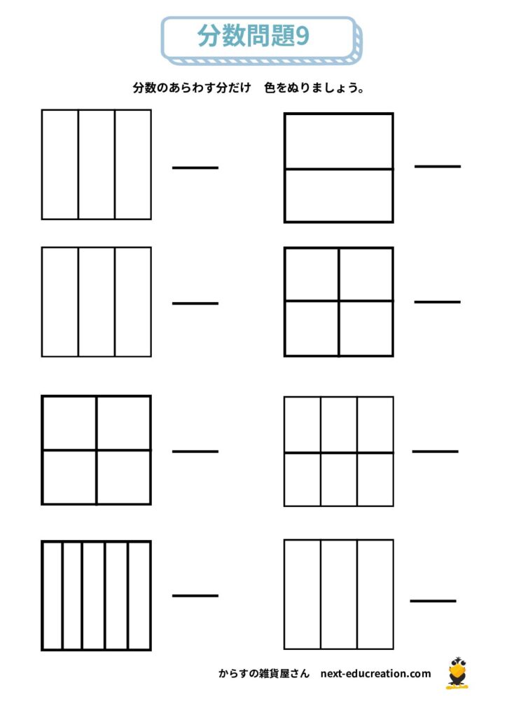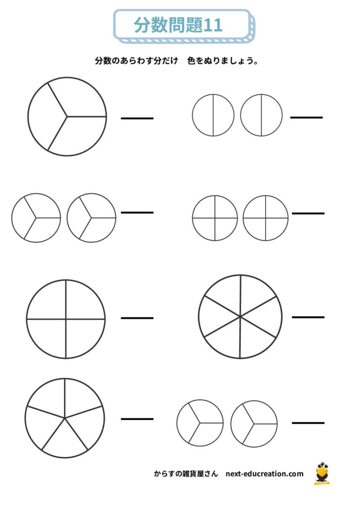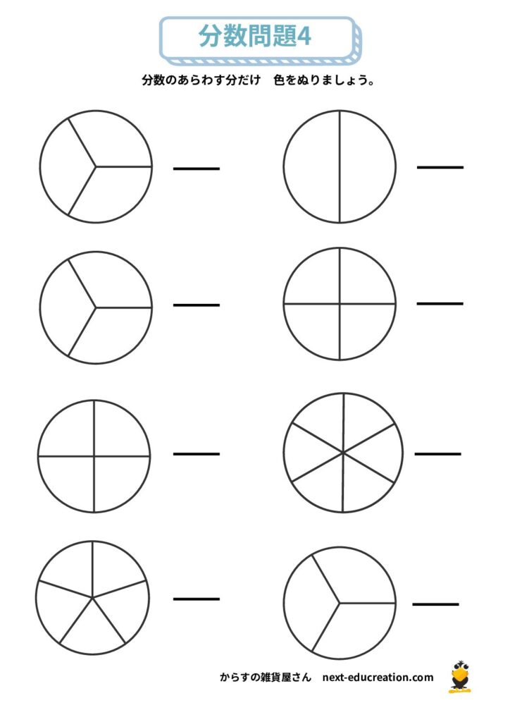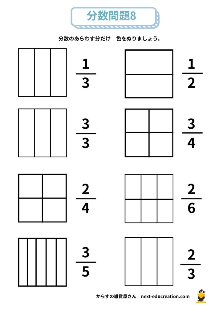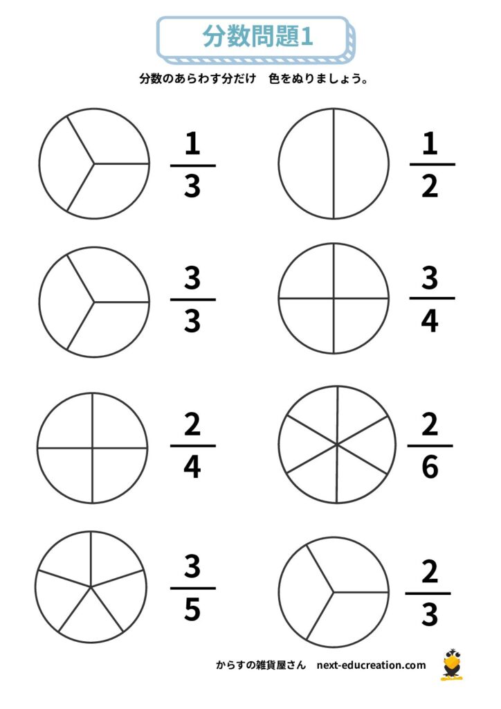 分数 無料プリント 2025.12.292026.01.06 目次 分数の大きさ分数の足し算分数の引き算 分数の大きさ 分数の概念理解のためのプリント課題です。 提示された分だけ色を塗り、分数の量感覚を掴むための教材です。 1ダウンロード 2ダウンロード 3ダウンロード 4ダウンロード 5ダウンロード 6ダウンロード 7ダウンロード 8ダウンロード 9ダウンロード 10ダウンロード 11ダウンロード 12ダウンロード 分数まとめて印刷ダウンロード 分数の足し算 分数の足し算1ダウンロード 分数の足し算2ダウンロード 分数の足し算3ダウンロード 分数の足し算4ダウンロード 分数の足し算まとめて印刷ダウンロード 分数の引き算 分数の引き算1ダウンロード 分数の引き算2ダウンロード 分数の引き算3ダウンロード 分数の引き算4ダウンロード 分数の引き算まとめて印刷ダウンロード
