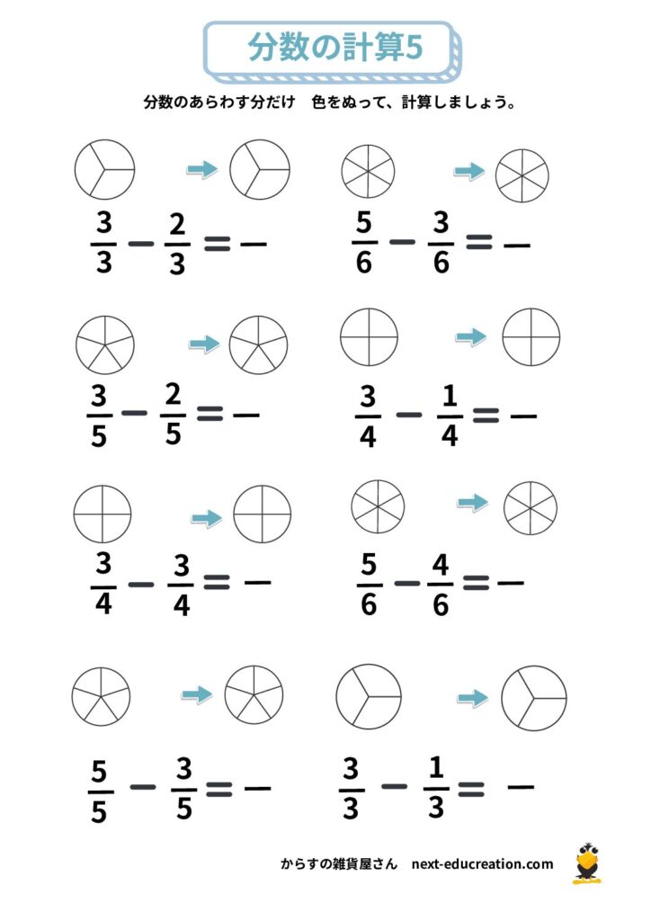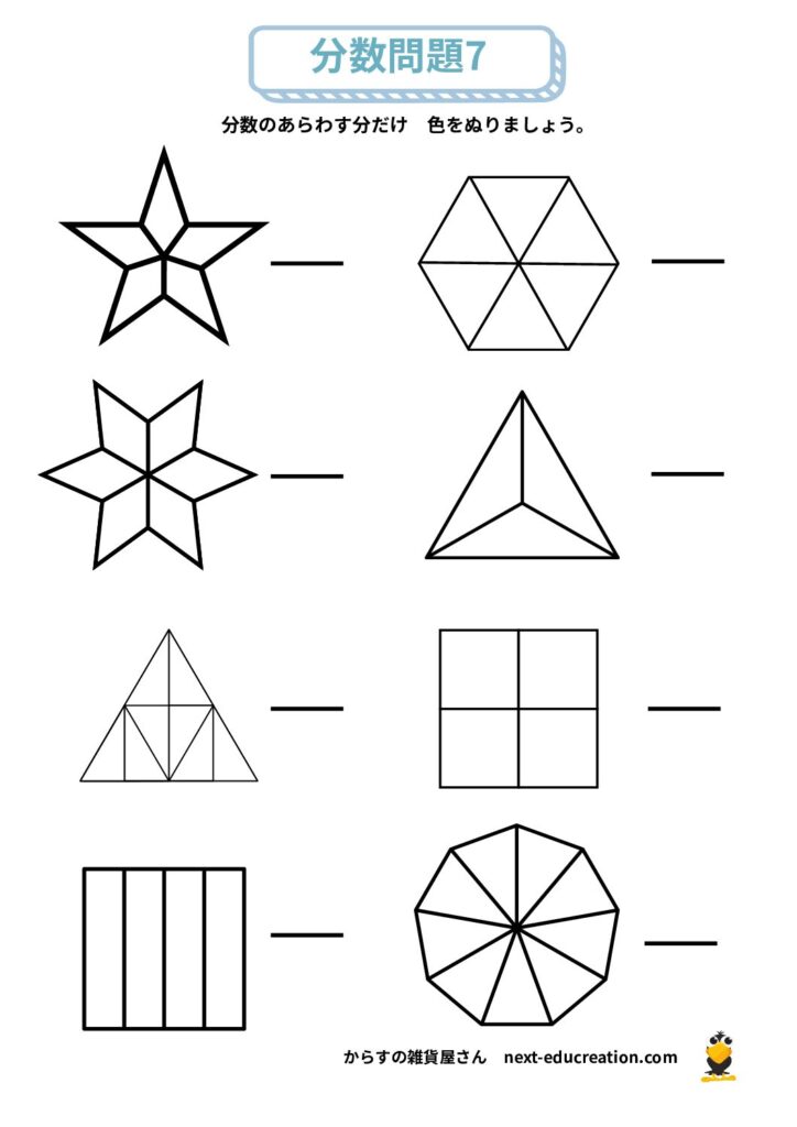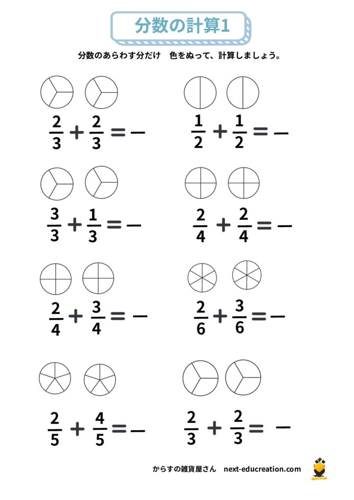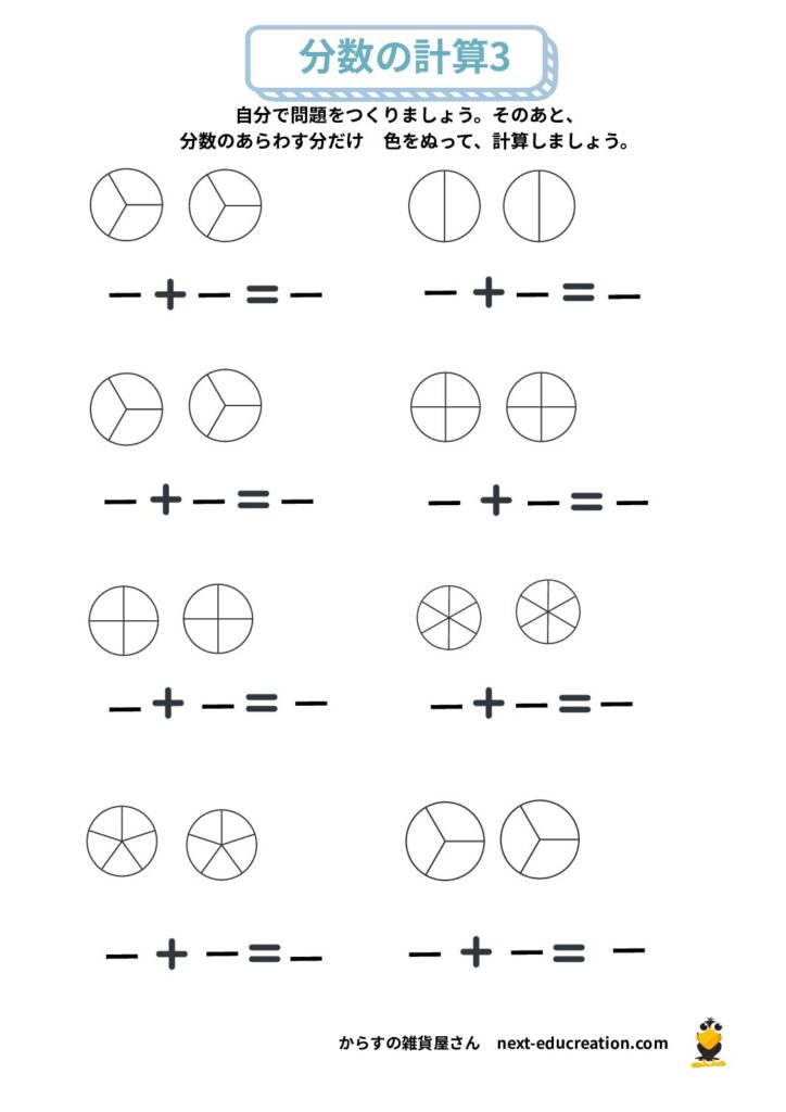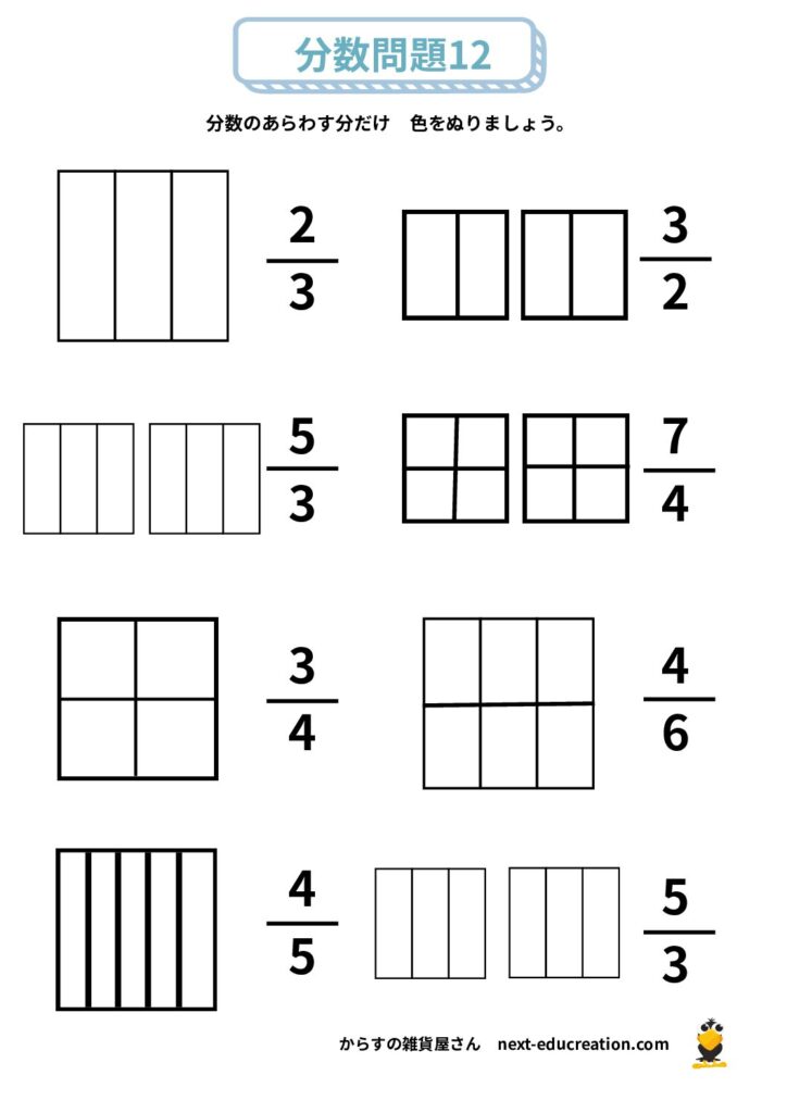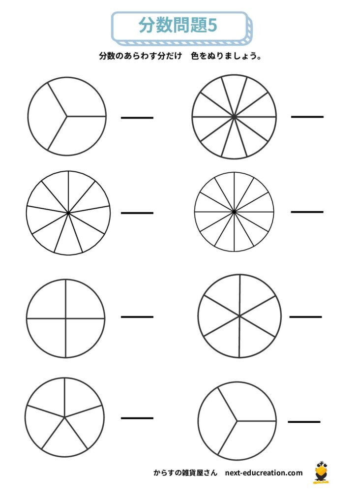 分数 無料プリント 2025.12.292026.01.06 目次 分数の大きさ分数の足し算分数の引き算 分数の大きさ 分数の概念理解のためのプリント課題です。 提示された分だけ色を塗り、分数の量感覚を掴むための教材です。 1ダウンロード 2ダウンロード 3ダウンロード 4ダウンロード 5ダウンロード 6ダウンロード 7ダウンロード 8ダウンロード 9ダウンロード 10ダウンロード 11ダウンロード 12ダウンロード 分数まとめて印刷ダウンロード 分数の足し算 分数の足し算1ダウンロード 分数の足し算2ダウンロード 分数の足し算3ダウンロード 分数の足し算4ダウンロード 分数の足し算まとめて印刷ダウンロード 分数の引き算 分数の引き算1ダウンロード 分数の引き算2ダウンロード 分数の引き算3ダウンロード 分数の引き算4ダウンロード 分数の引き算まとめて印刷ダウンロード