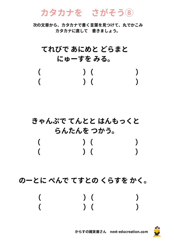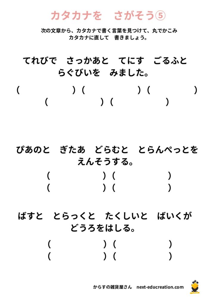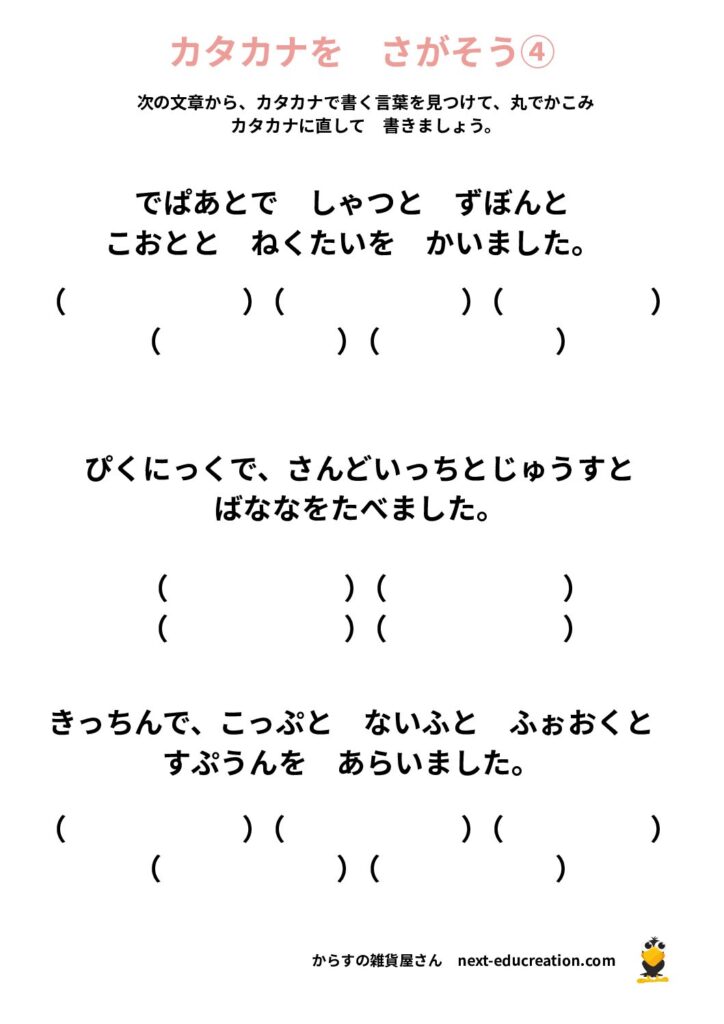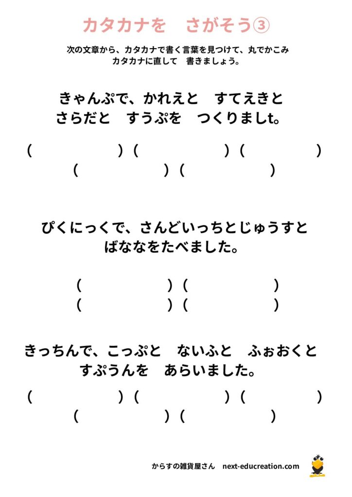 カタカナ作文 無料プリント 2025.12.312026.01.06 目次 カタカナ作文カタカナを見つけよう カタカナ作文 カタカナを使って作文をしましょう。 1ダウンロード 2ダウンロード 3ダウンロード 4ダウンロード 5ダウンロード 6ダウンロード 7ダウンロード 8ダウンロード 9ダウンロード 10ダウンロード 11ダウンロード 12ダウンロード 13ダウンロード まとめて印刷ダウンロード カタカナを見つけよう 1ダウンロード 2ダウンロード 3 ダウンロード 4ダウンロード 5ダウンロード 6ダウンロード 7ダウンロード 8ダウンロード まとめて印刷 ダウンロード